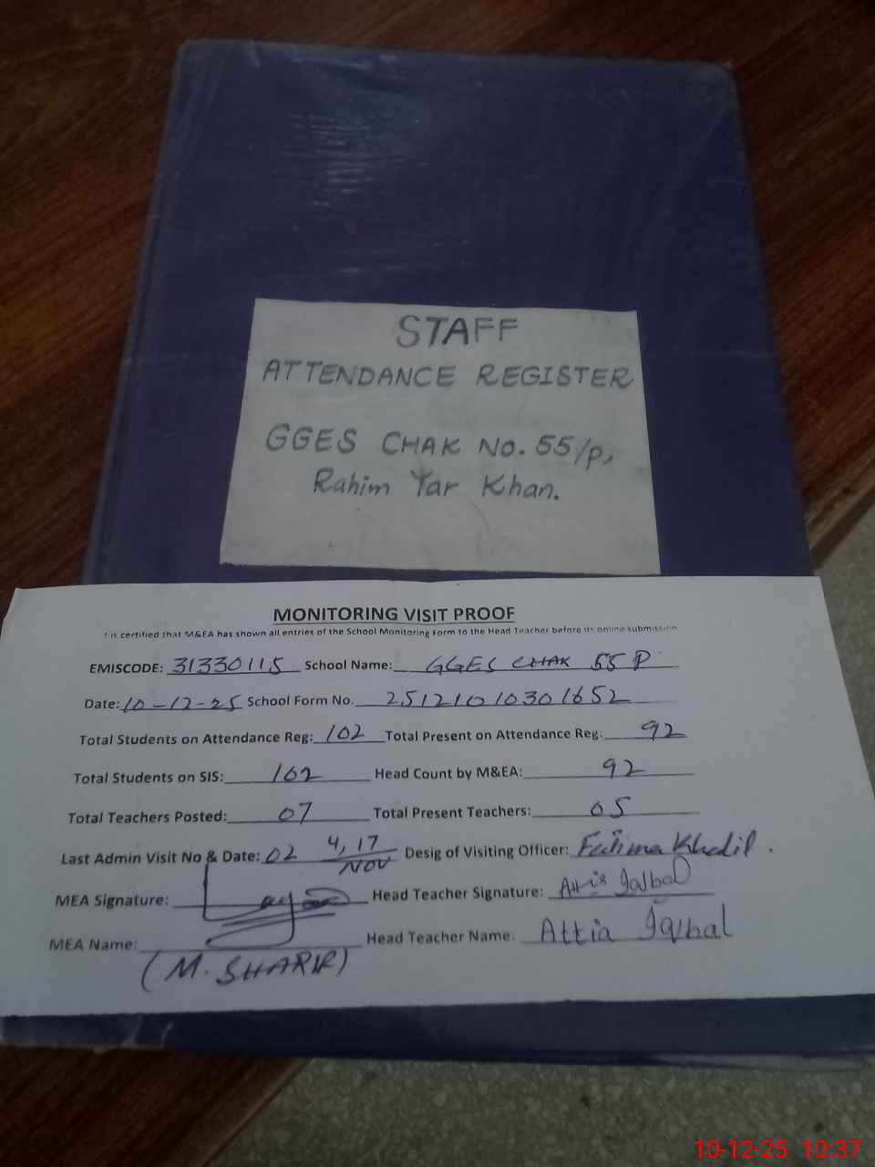 | EMIS Code: 31330115 | Name of School: GGES CHAK NO. 55/P | |||
