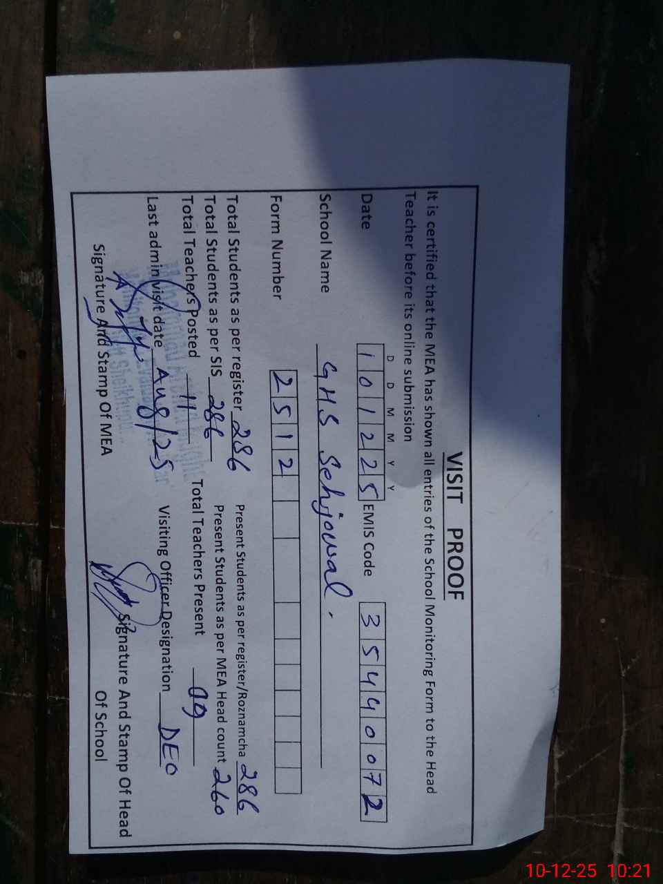 | EMIS Code: 35440072 | Name of School: GHS SEHJOWAL | |||