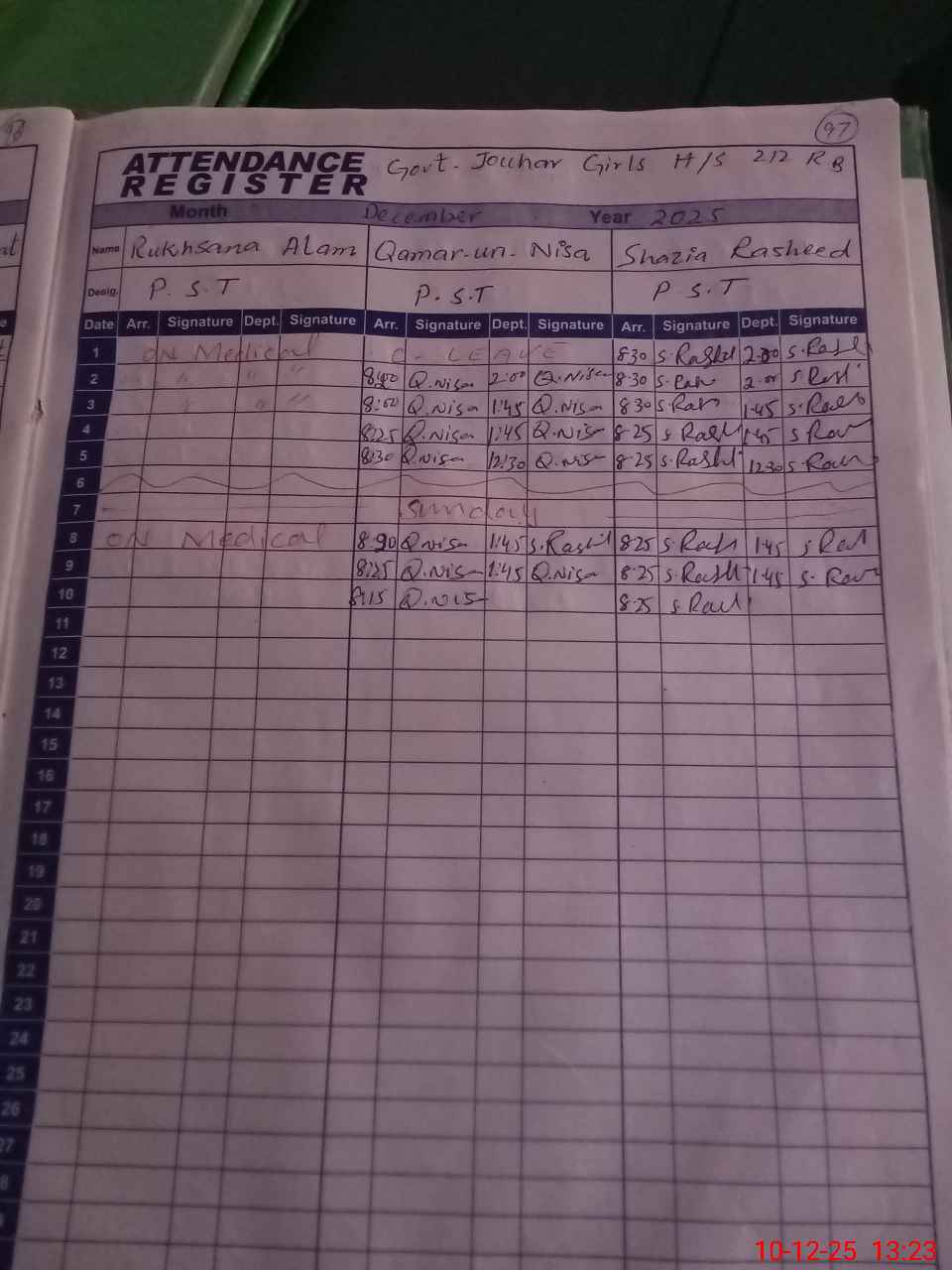 | CNIC | Full Name | Designation | R/C | Absence During Last Calender Month |
