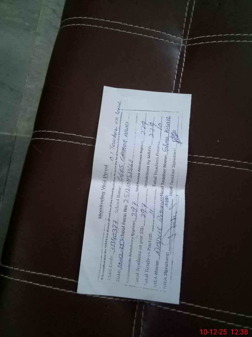 | Attendance Register | Head Teacher | MEA with School | Visit Proof |