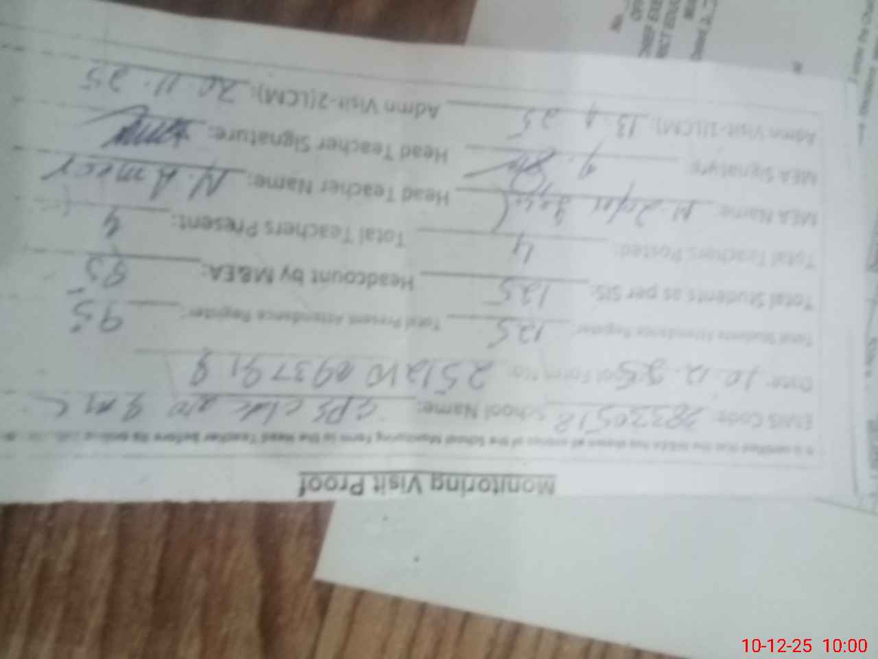 | Monitoring Date: 10-12-2025 | Start Time: 10-12-2025 09:37 AM | End Time: 10-12-2025 10:01 AM | Name of MEA: Mu**** Za**** Iq**** | |