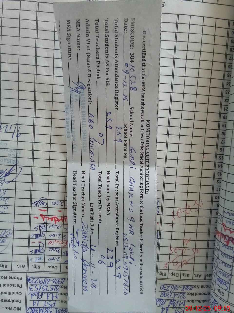 | Certified that this School was Inspected by the Undersigned MEA/DMO Today and the Information Stated Above is as Per Record. | |||||