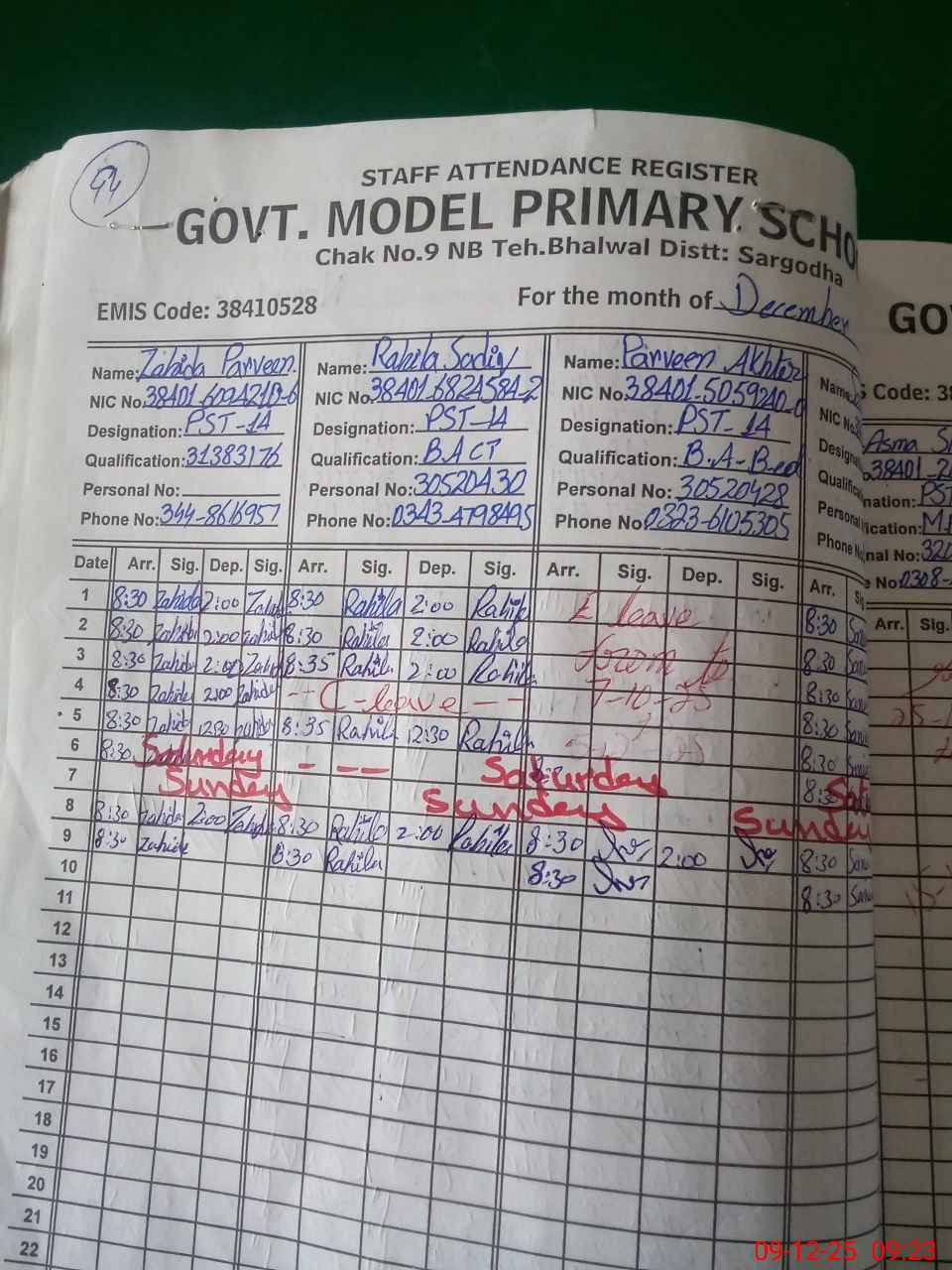| EMIS Code: 38410528 | Name of School: GMPS CHAK NO.9 NB LOKRI | |||