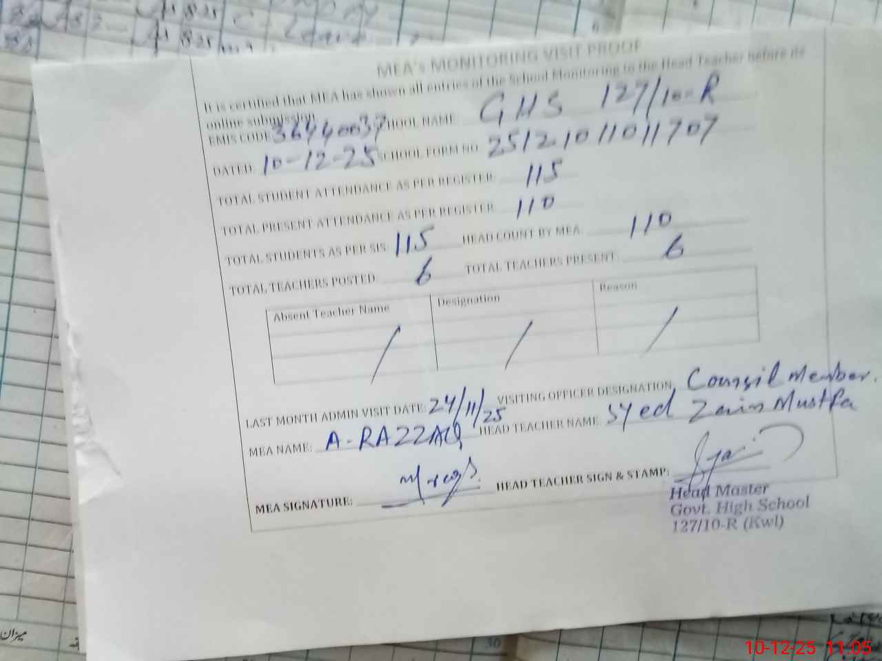 | EMIS Code: 36440037 | Name of School: GHS 127/10-R, JAHANIAN | |||