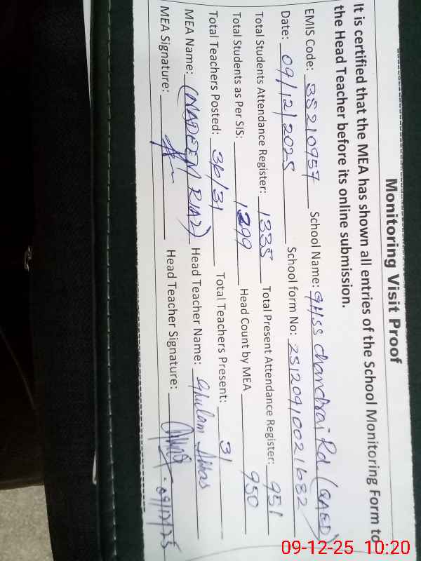 | EMIS Code: 35210957 | Name of School: GHSS ATTACHED WITH QAED, CHANRAI ROAD KOT LAKHPAT | |||