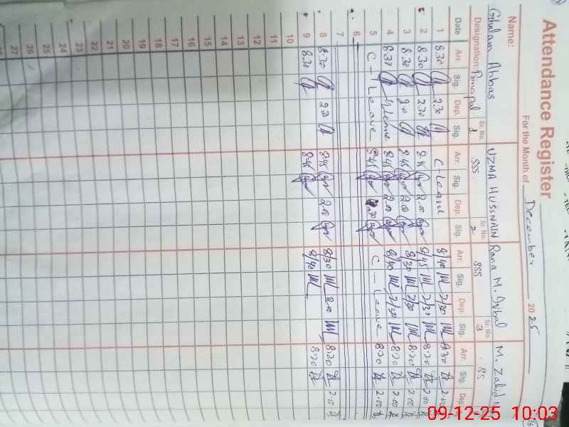 | CNIC | Full Name | Designation | R/C | Absence During Last Calender Month |