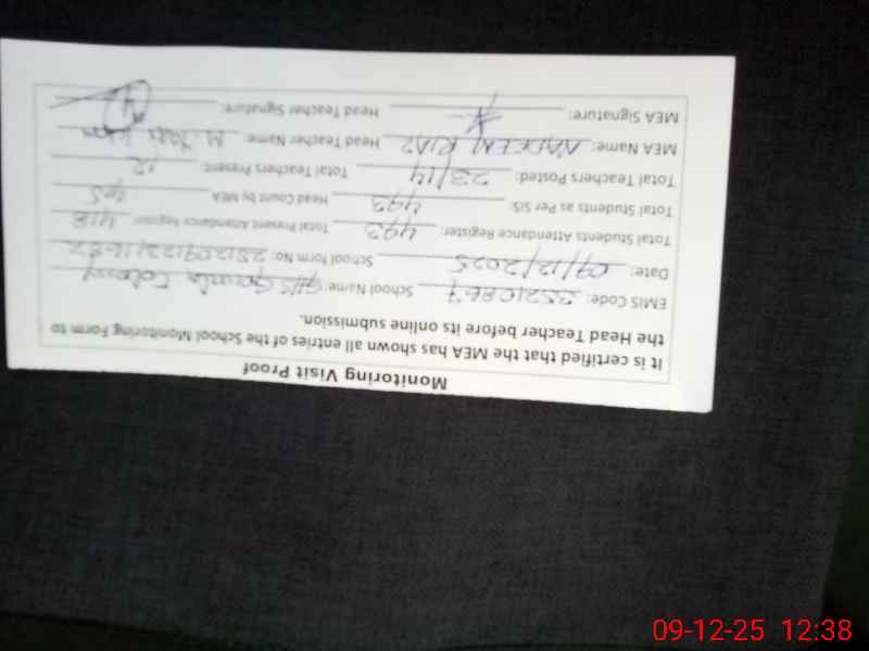 | Attendance Register | Head Teacher | MEA with School | Visit Proof |