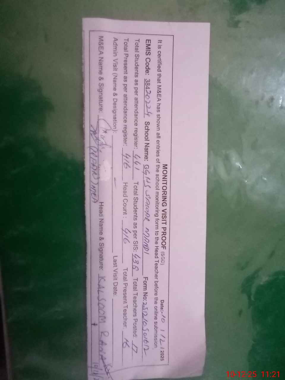 | EMIS Code: 38420224 | Name of School: GGHS SAWAR MANDI RD | |||