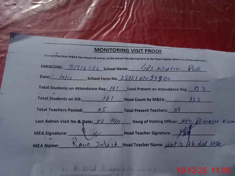 | EMIS Code: 31310180 | Name of School: GPS MALIK PUR (After Noon) | |||