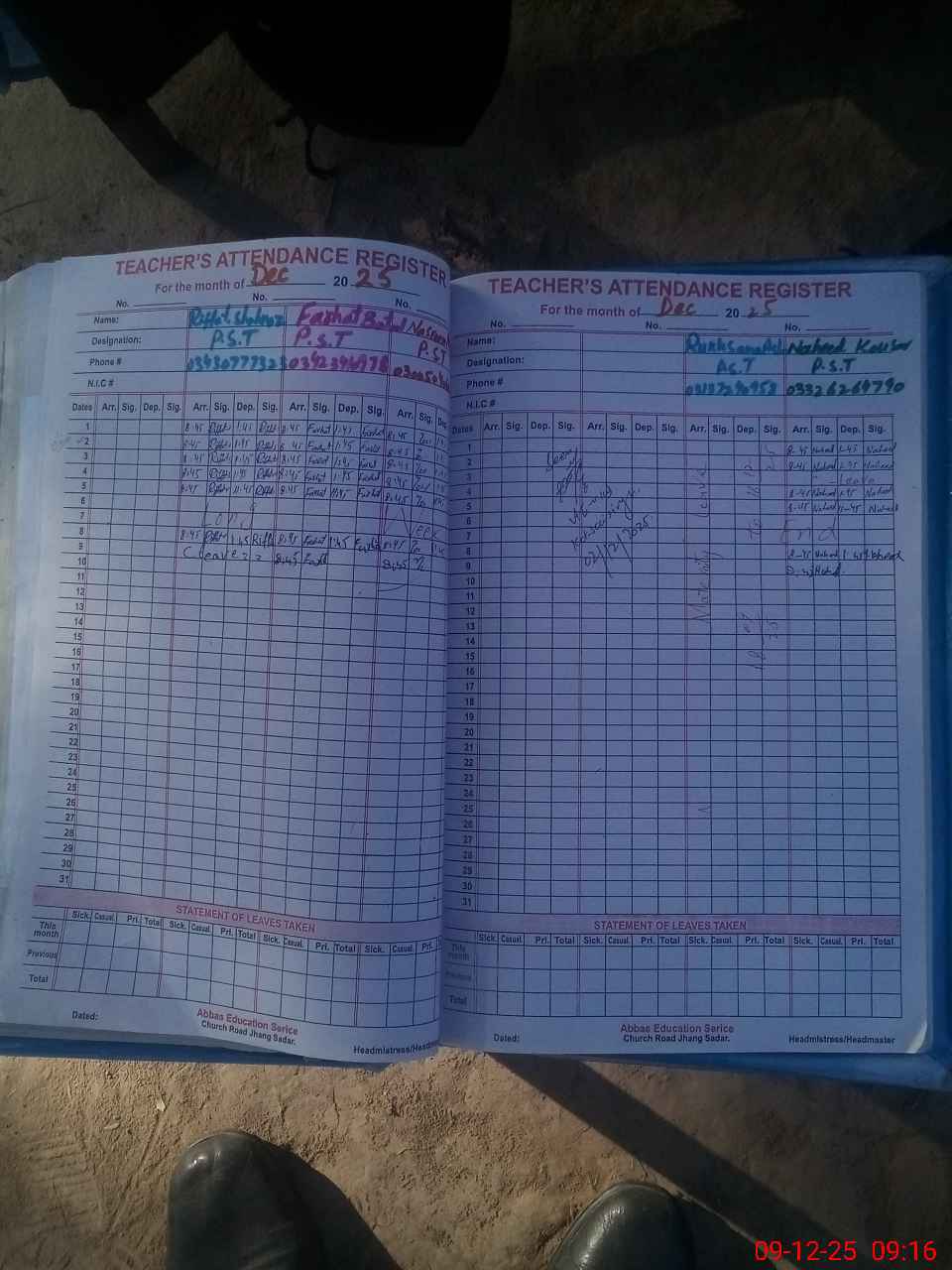 | Name: RI**** SH**** Designation: (School Headmaster's/Headmistress's) PST/PTC/JV Phone/Cell Number: 03**** |