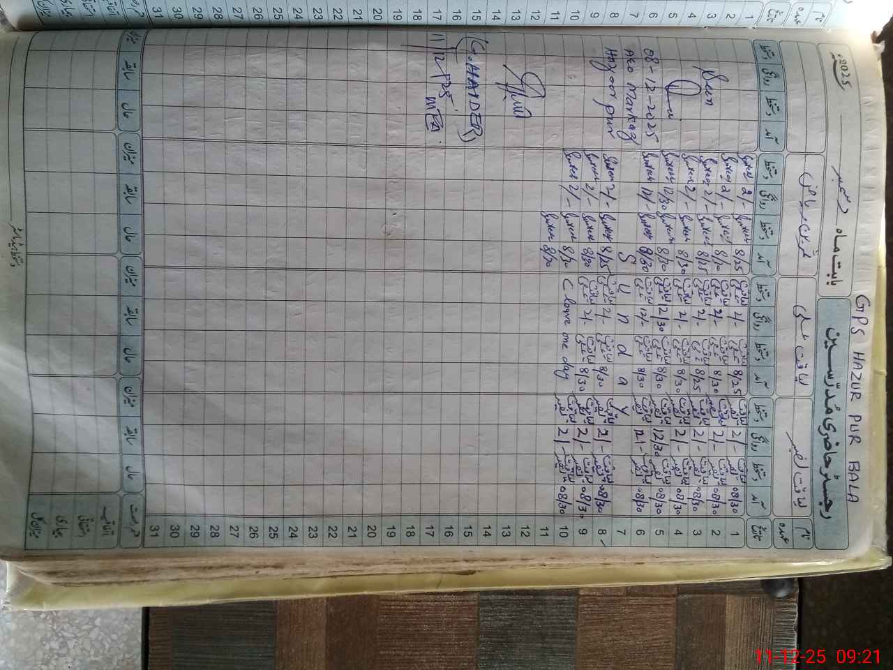 | Remarks (Use Separate Page if Required): LIAQAT NASEER AND LIAQAT ALI CAME SCHOOL AT 0925 AM | |||||