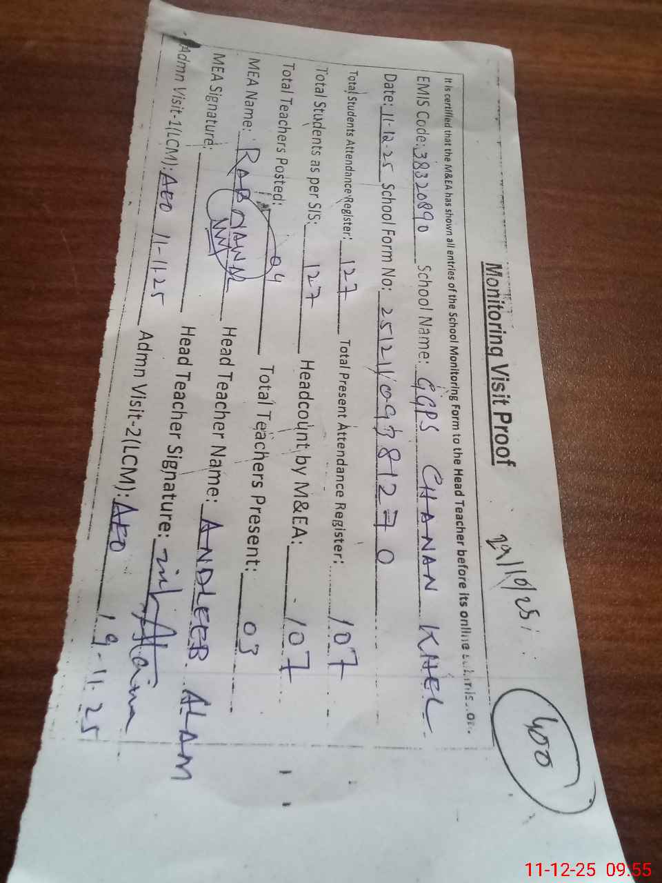 | EMIS Code: 38320890 | Name of School: GGPS CHANAN KHEL | |||