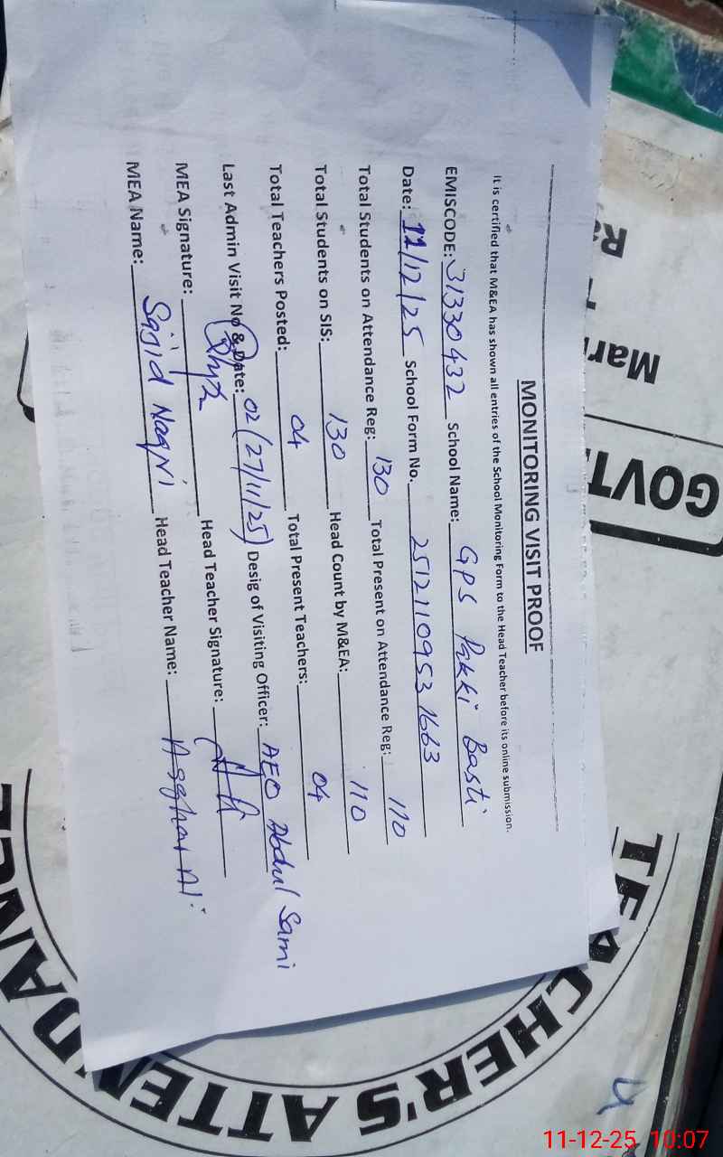 | EMIS Code: 31330432 | Name of School: GPS PAKKI BASTI | |||
