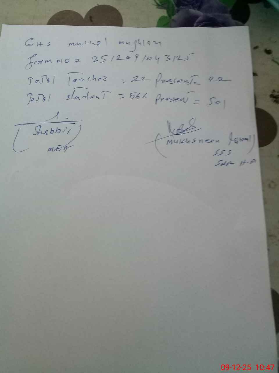 | Name: Mu**** Iq**** Designation: (School Headmaster's/Headmistress's) HEADMASTER Phone/Cell Number: 03**** |