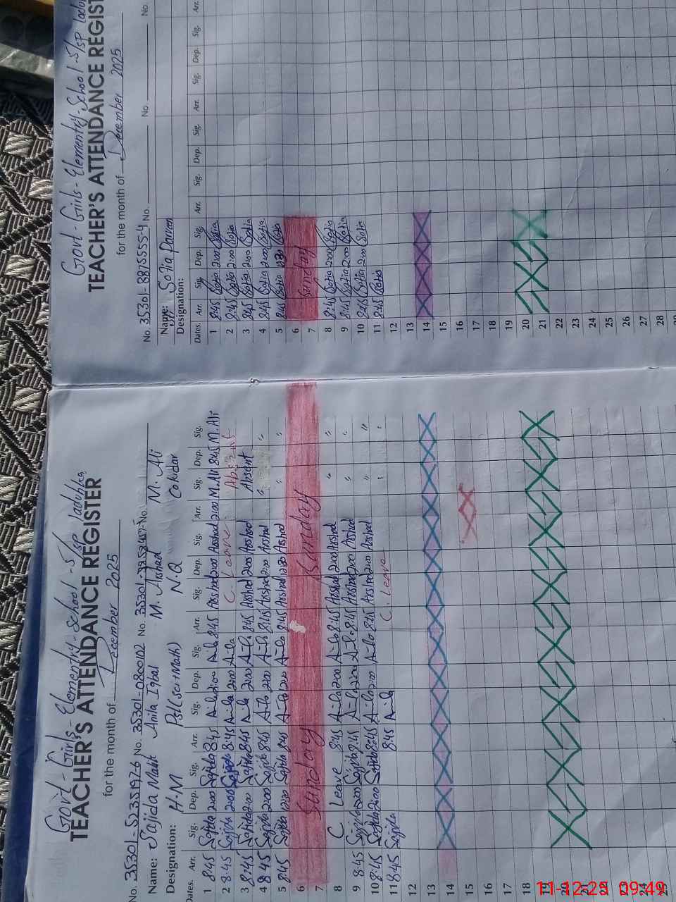 | Remarks (Use Separate Page if Required): Muhammad Ali chokidar cnic 35301611150677 is absent from 2 December 2025 to till date | |||||