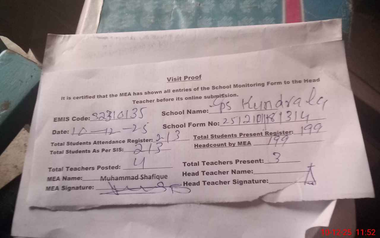 | EMIS Code: 32310135 | Name of School: GPS KUNDRALA | |||