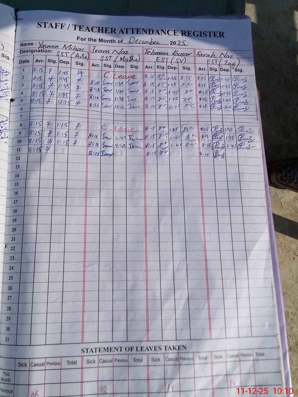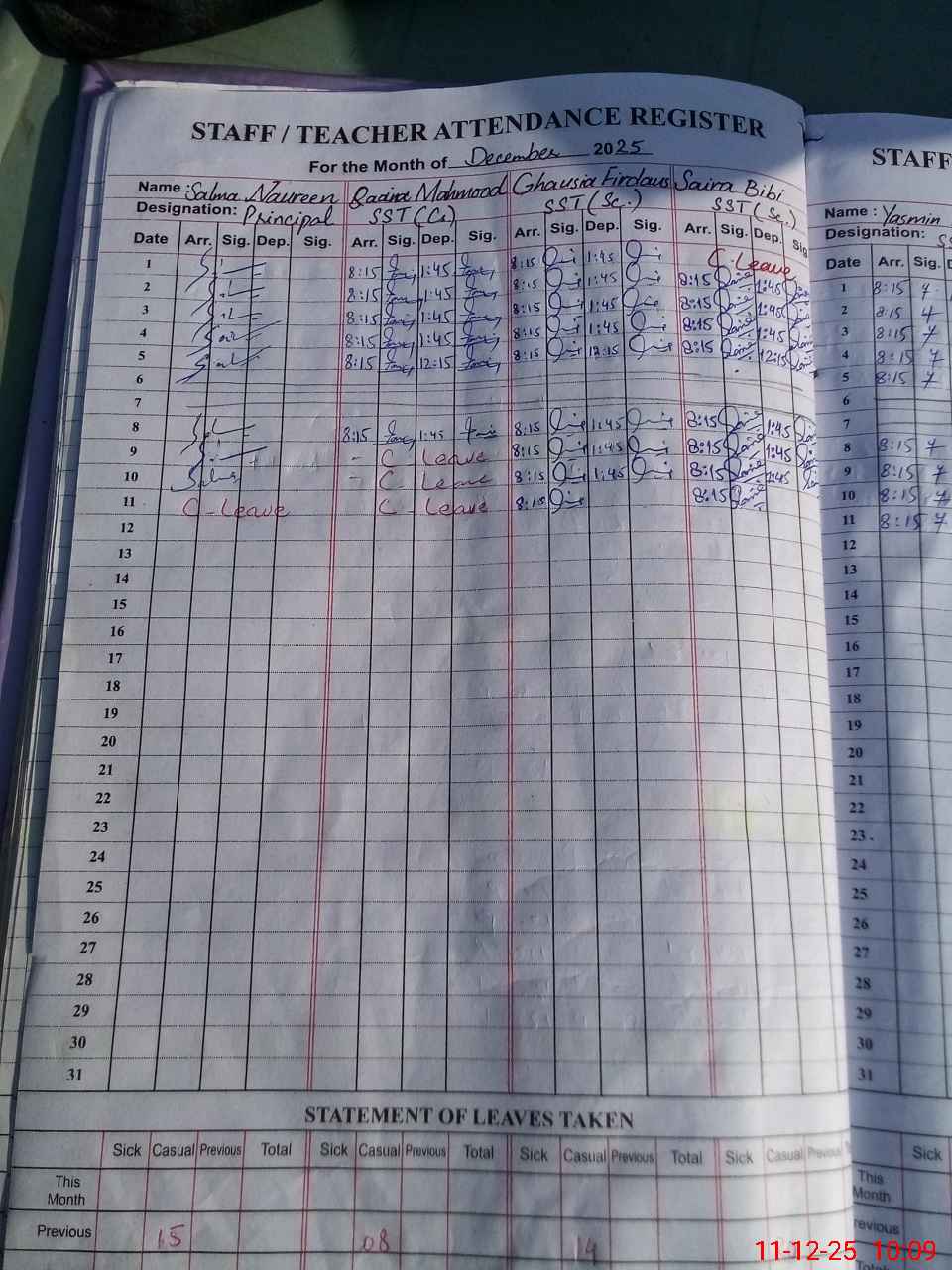 | 37**** | Sa**** Na**** | PRINCIPAL | Regular | 0 | 0 | 0 | 0 | 0 | 0 | 0 | 0 | 0 | Casual |