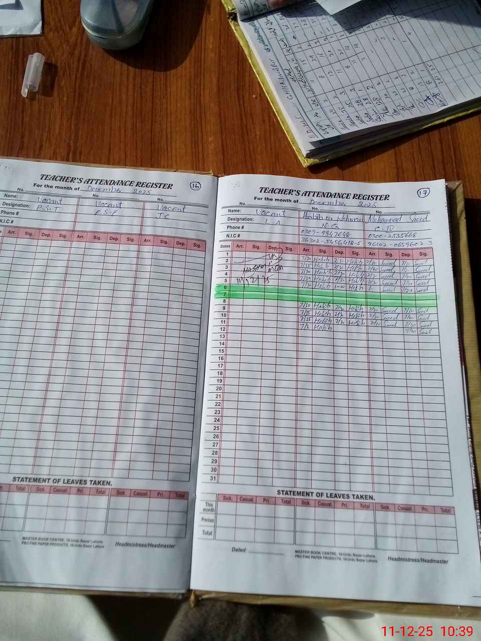 | Name: SH**** SA**** Designation: (School Headmaster's/Headmistress's) SST( Comp) Phone/Cell Number: 03**** |