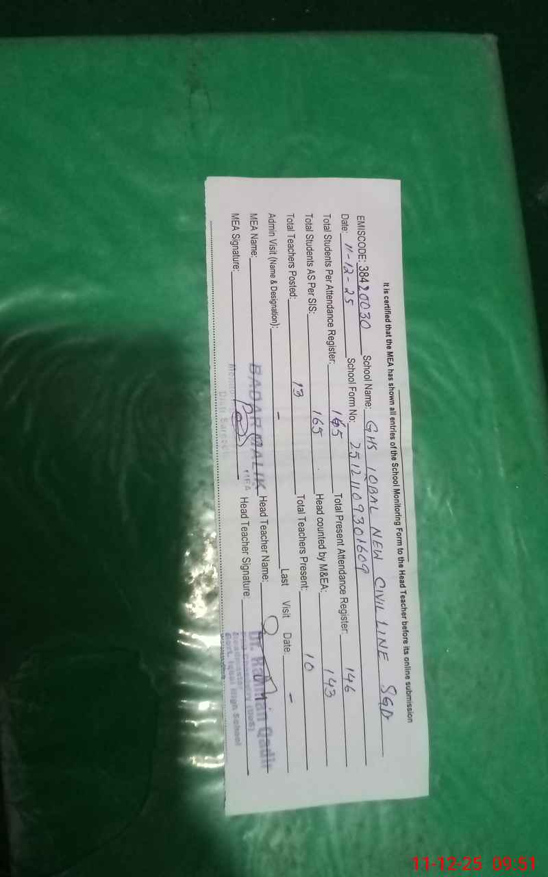 | EMIS Code: 38420030 | Name of School: GHS IQBAL NEW CIVIL LINE SARGODHA | |||