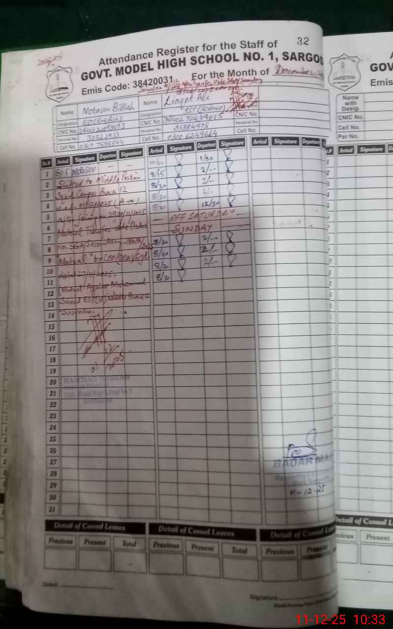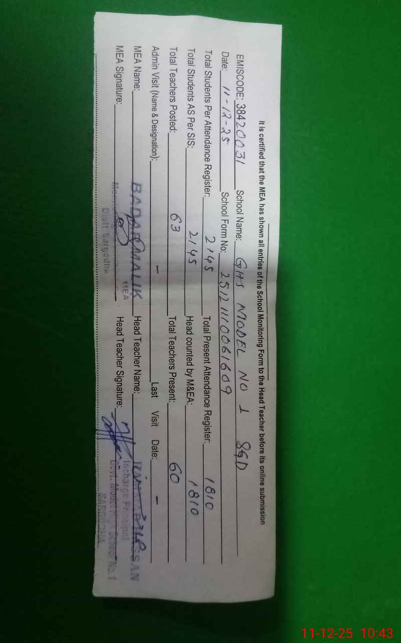 | EMIS Code: 38420031 | Name of School: GHS MODEL NO.1 SARGODHA | |||