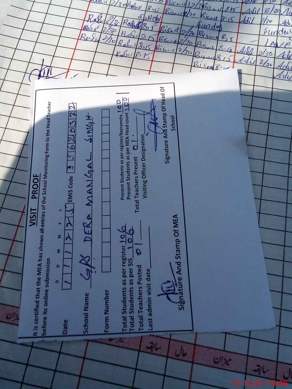 | EMIS Code: 35620372 | Name of School: GPS DERA MANGAL SINGH | |||