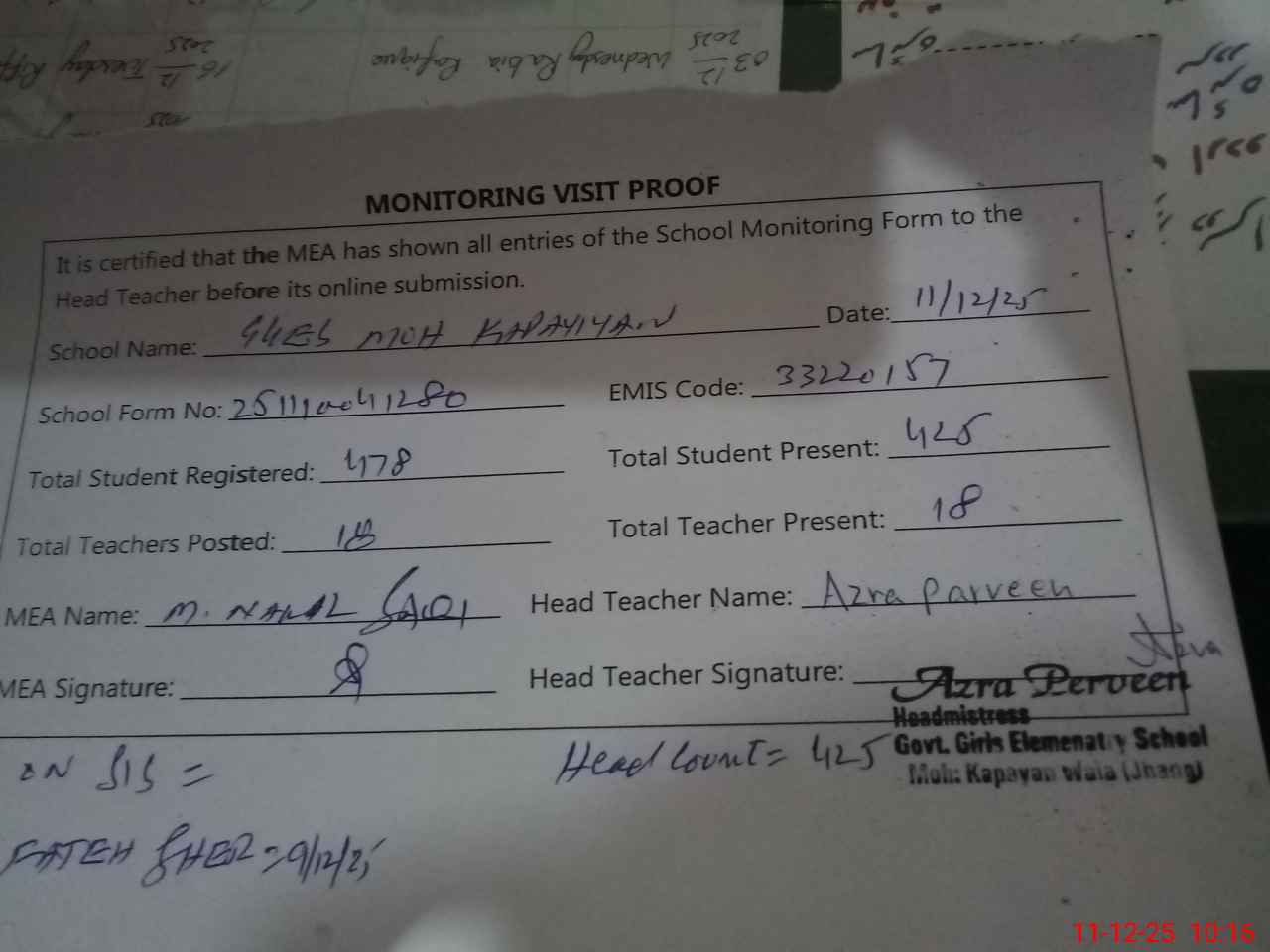 | EMIS Code: 33220157 | Name of School: GGES MOHALLAH KAPAYIYAN WALA | |||