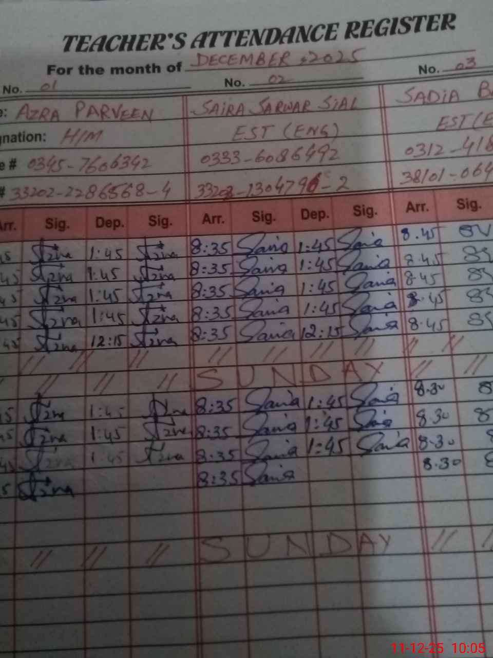 | Name: Az**** pe**** Designation: (School Headmaster's/Headmistress's) sse Phone/Cell Number: 03**** |