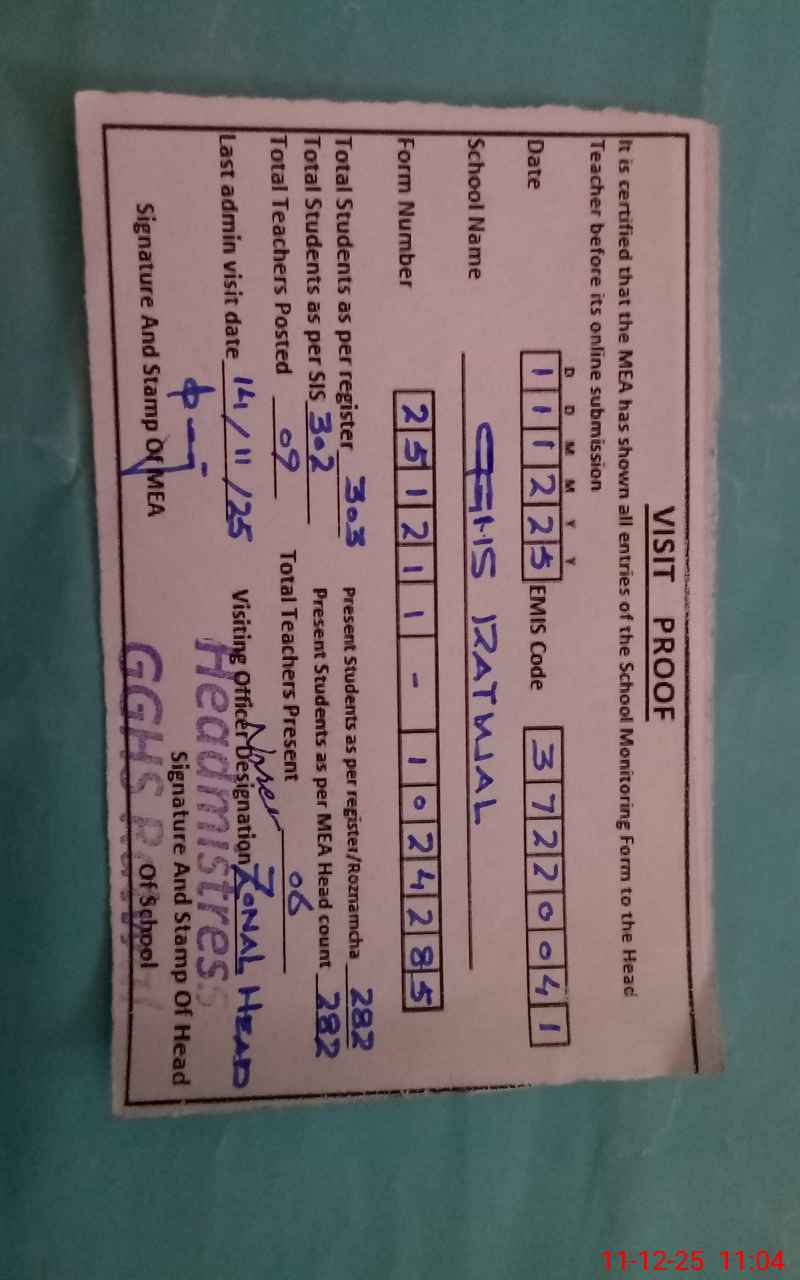 | EMIS Code: 37220041 | Name of School: GGHS RATWAL | |||