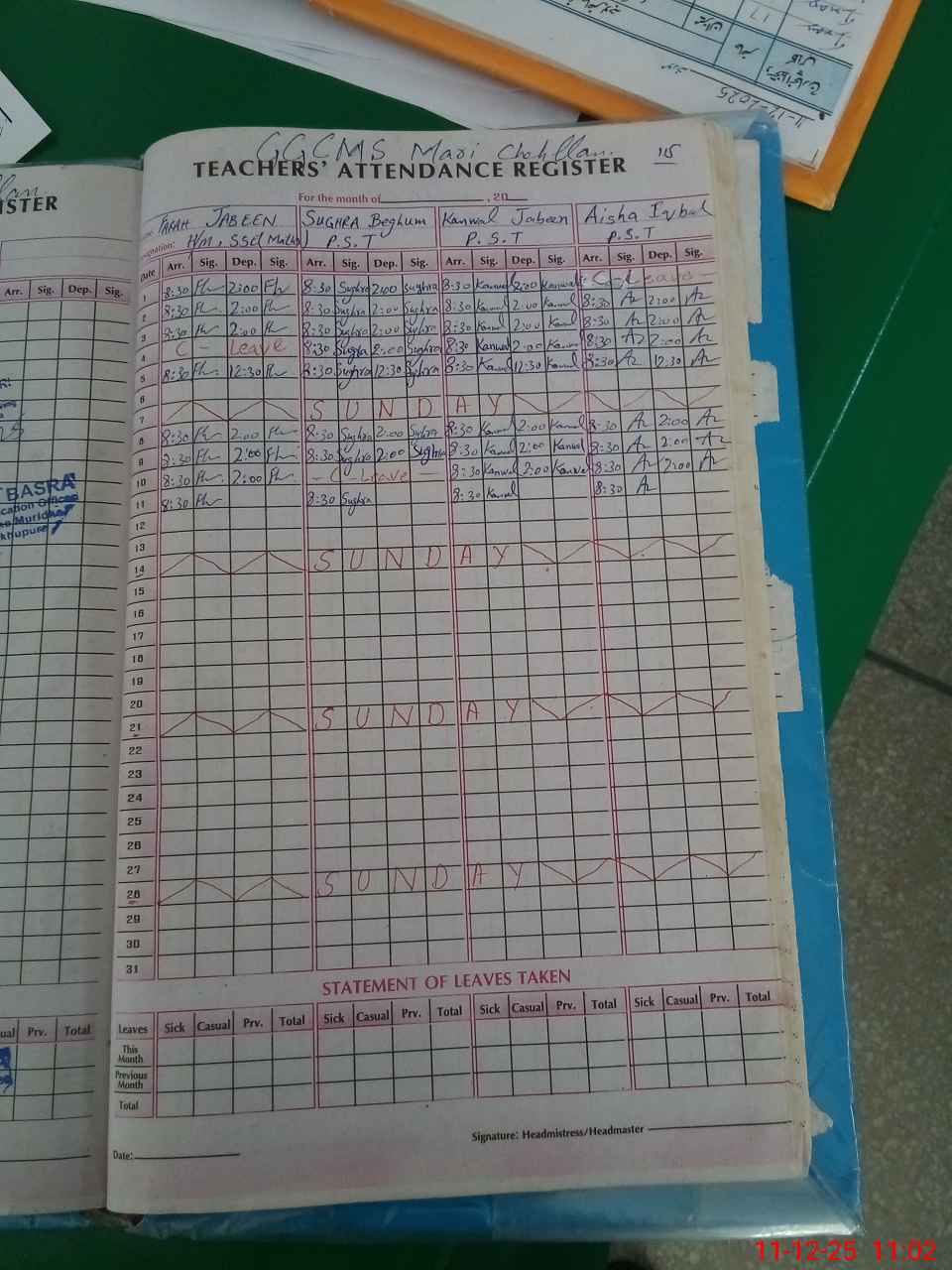 | Attendance Register | Head Teacher | MEA with School | Visit Proof |