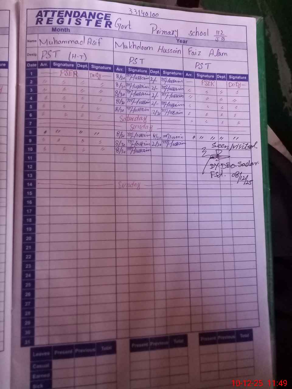 | Name: Mu**** As**** Designation: (School Headmaster's/Headmistress's) PST Phone/Cell Number: 03**** |