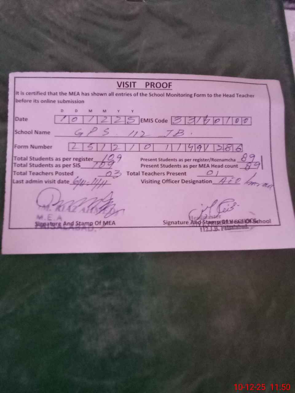 | EMIS Code: 33140100 | Name of School: GPS CHAK 112 JB | |||