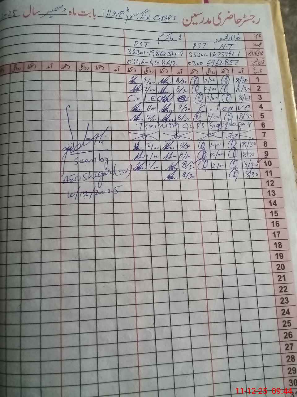 | Name: KH**** MA**** Designation: (School Headmaster's/Headmistress's) PST Phone/Cell Number: 03**** |