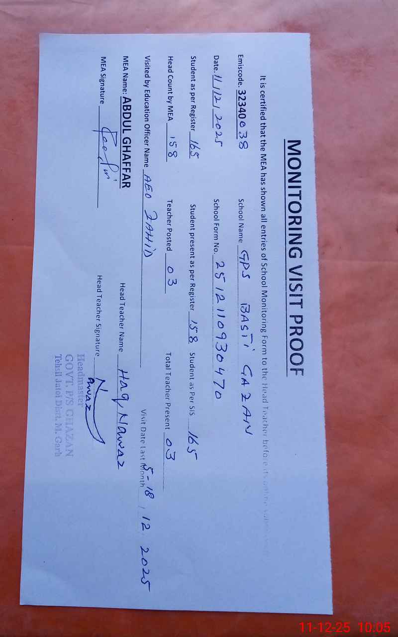 | EMIS Code: 32340038 | Name of School: GPS BASTI GHAZAN | |||