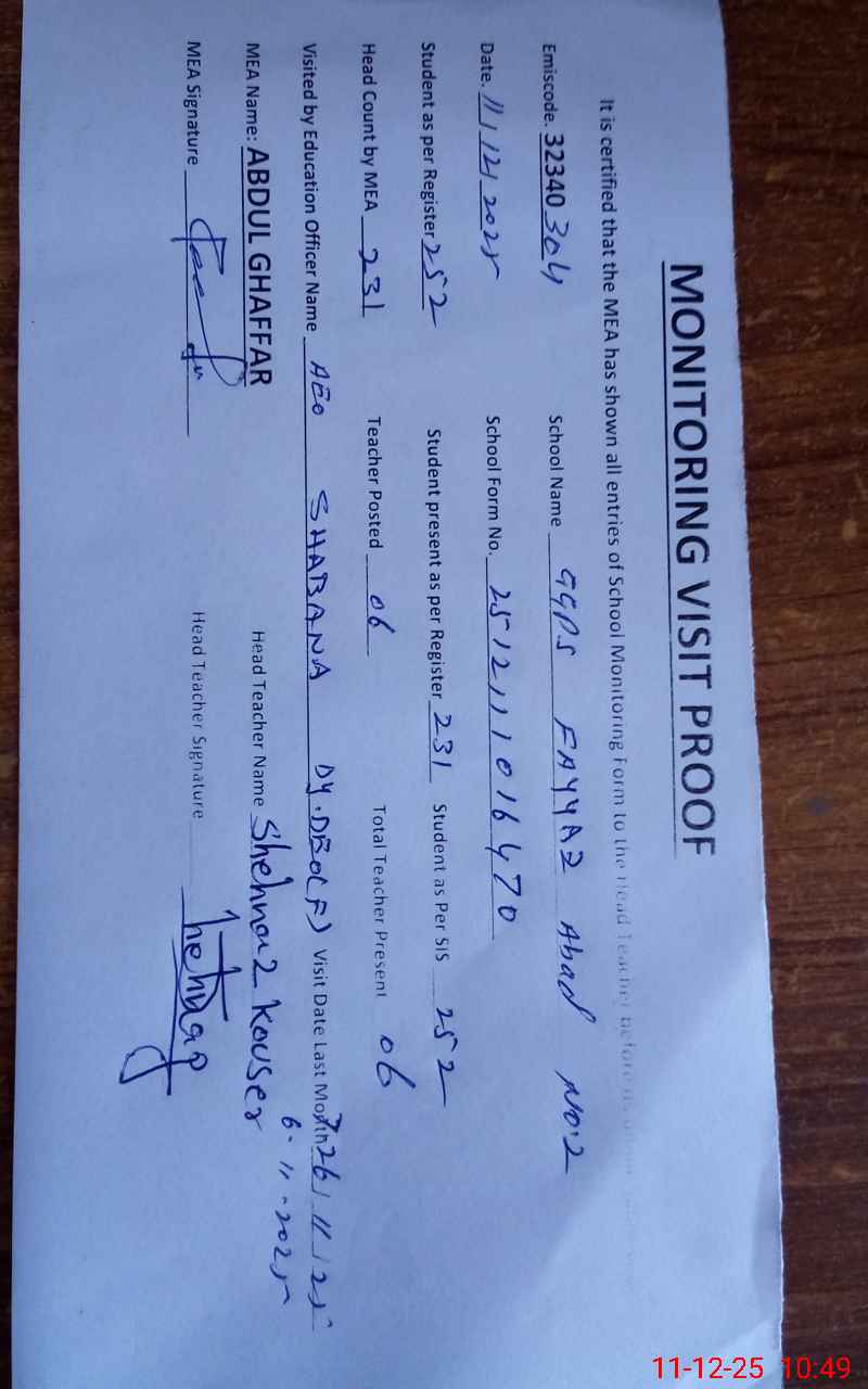 | EMIS Code: 32340304 | Name of School: GGPS FAYYAZ ABAD NO.2 | |||