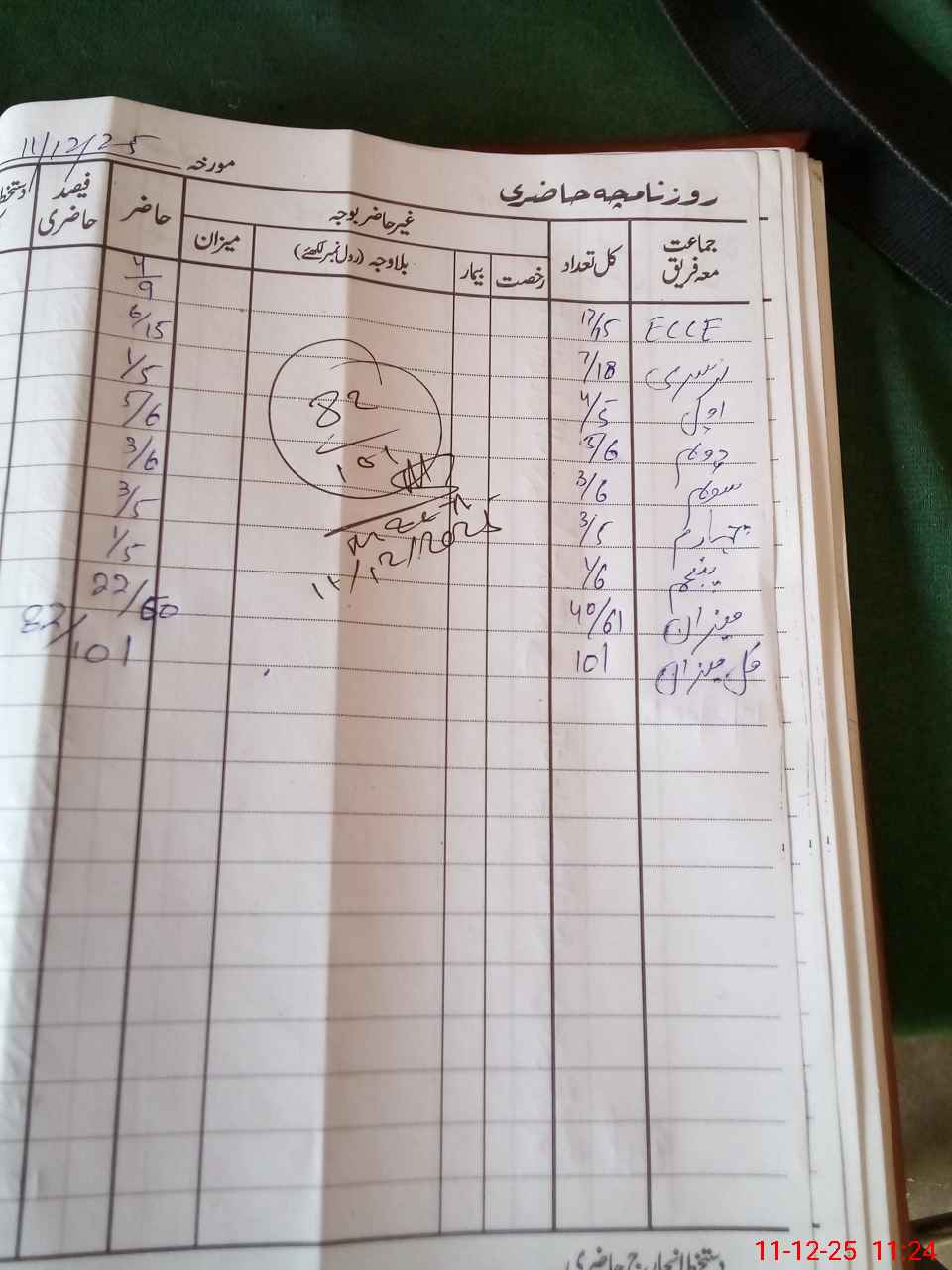 | CNIC | Full Name | Designation | R/C | Absence during last cal. month |