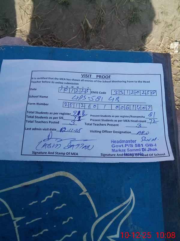 | EMIS Code: 33120258 | Name of School: GPS 581 GB I | |||