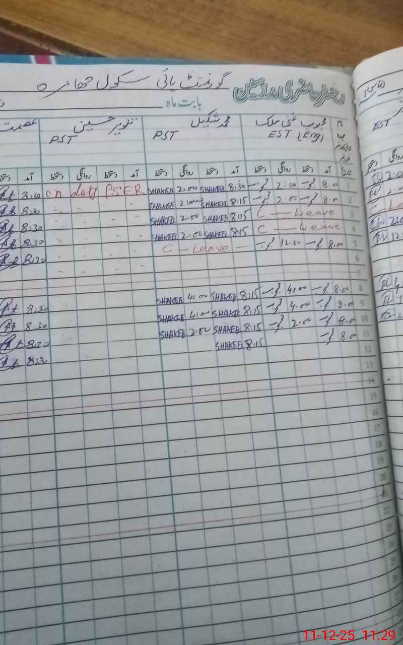 | CNIC | Full Name | Designation | R/C | Absence During Last Calender Month |