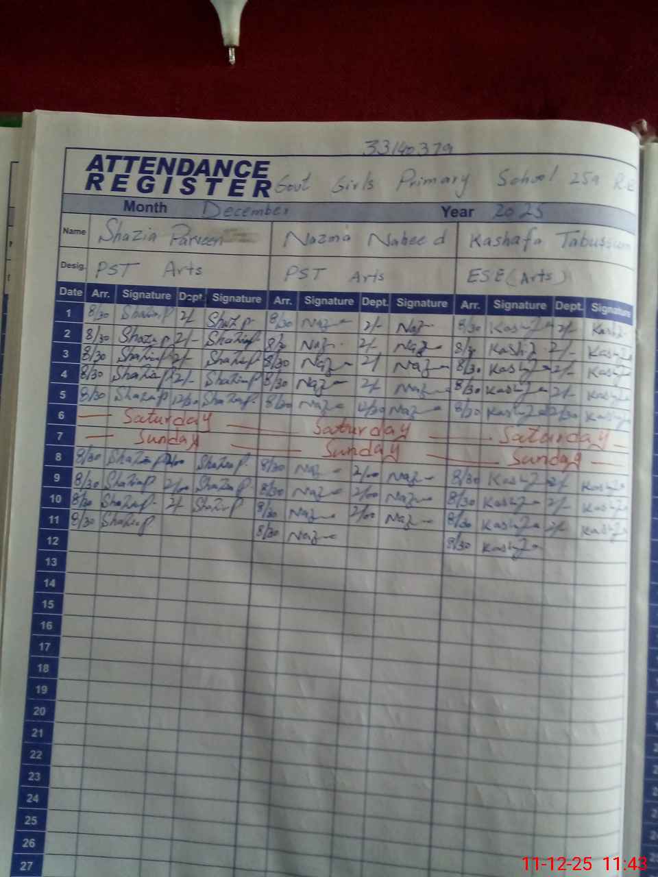 | Name: SH**** PA**** Designation: (School Headmaster's/Headmistress's) ESE ARTS Phone/Cell Number: 03**** |