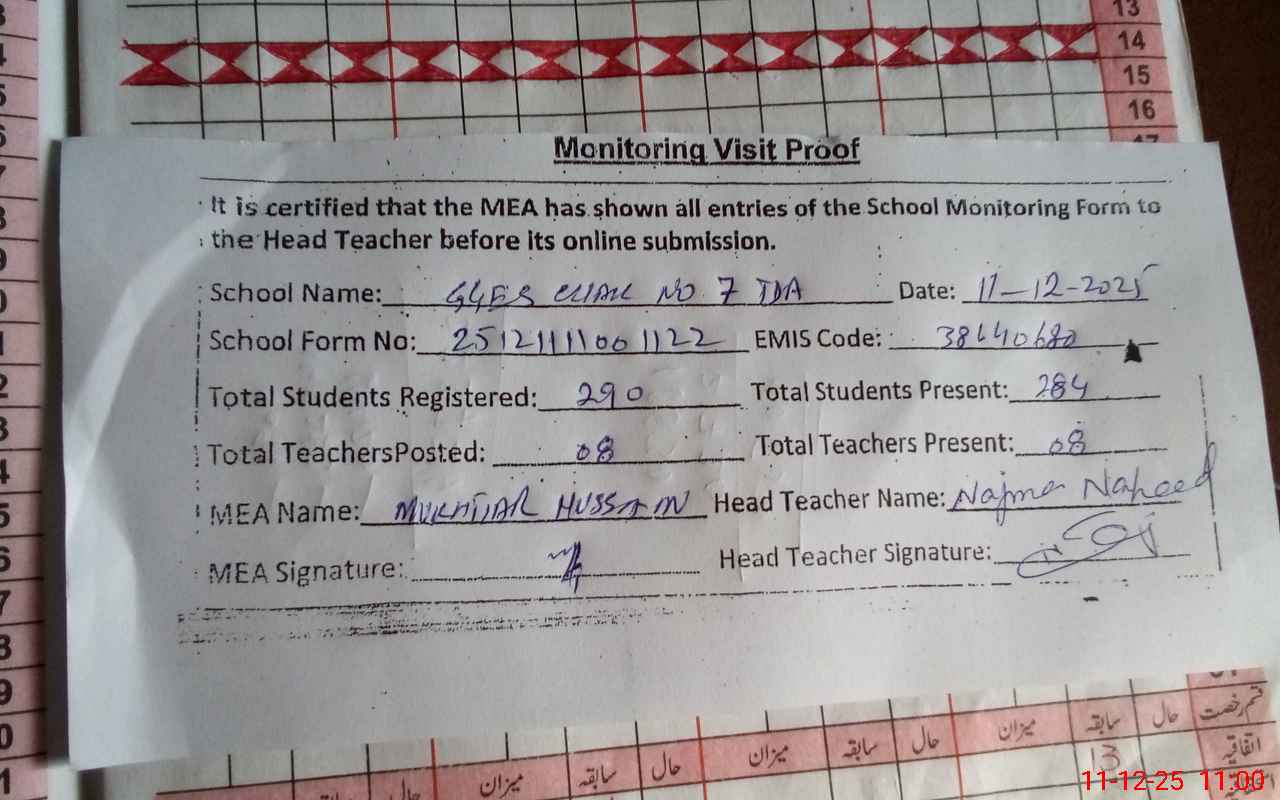 | EMIS Code: 38140680 | Name of School: GGES CHAK NO. 7 TDA | |||