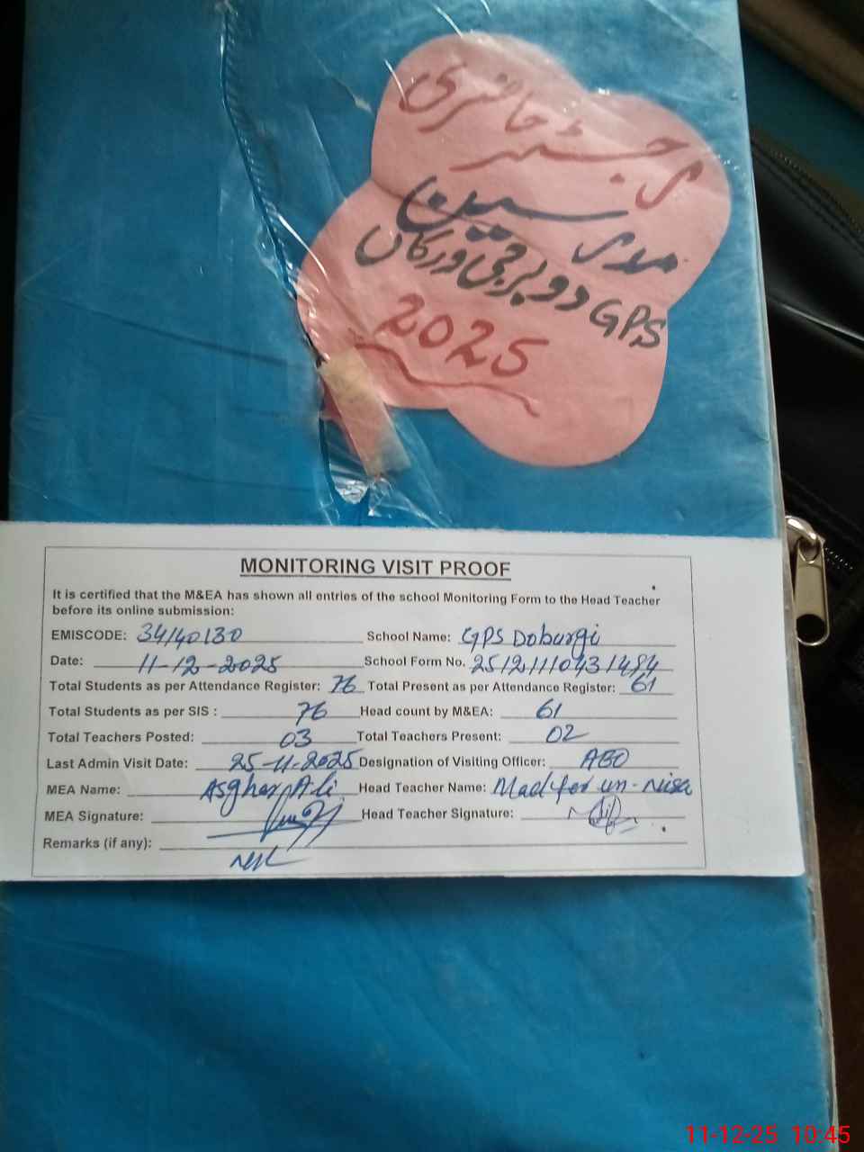 | EMIS Code: 34140130 | Name of School: GPS DOBURGI VIRKAN | |||