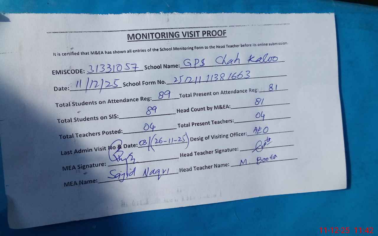 | EMIS Code: 31331057 | Name of School: GPS BASTI CHAH KALOO | |||