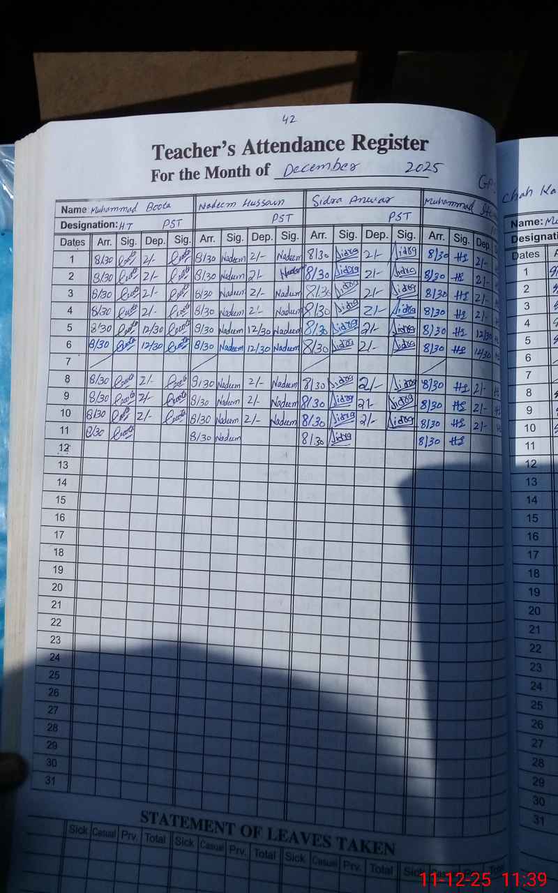 | Attendance Register | Head Teacher | MEA with School | Visit Proof |