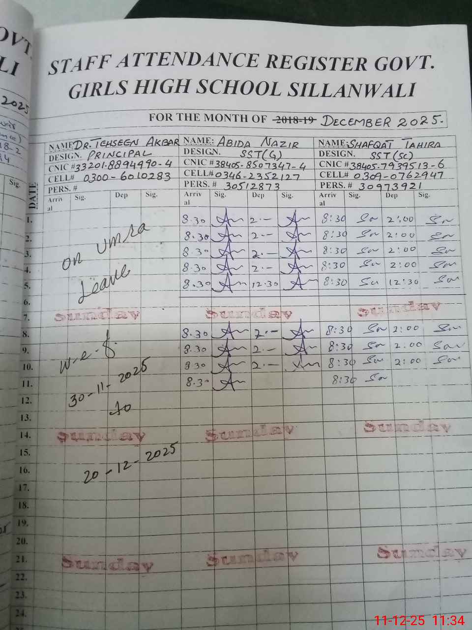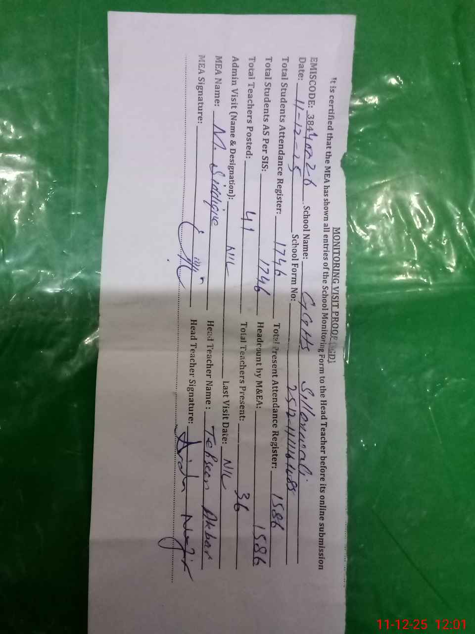 | EMIS Code: 38440026 | Name of School: GGHS SILLANWALI | |||