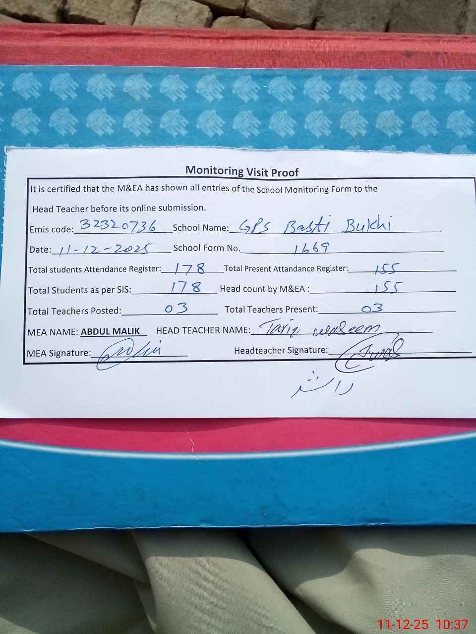 | EMIS Code: 32320736 | Name of School: GPS BASTI BUKHI | |||