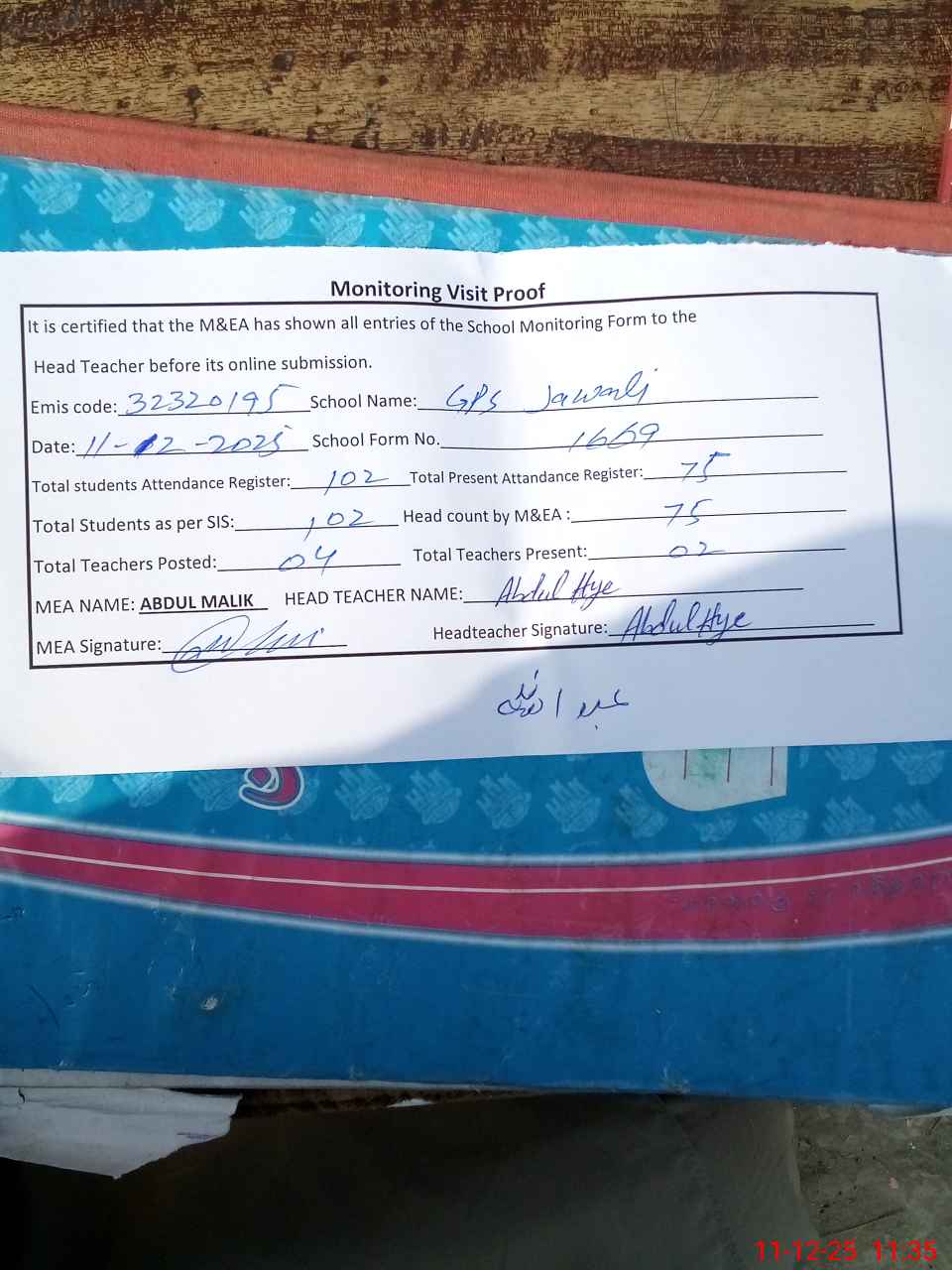 | EMIS Code: 32320195 | Name of School: GPS JAWALI | |||