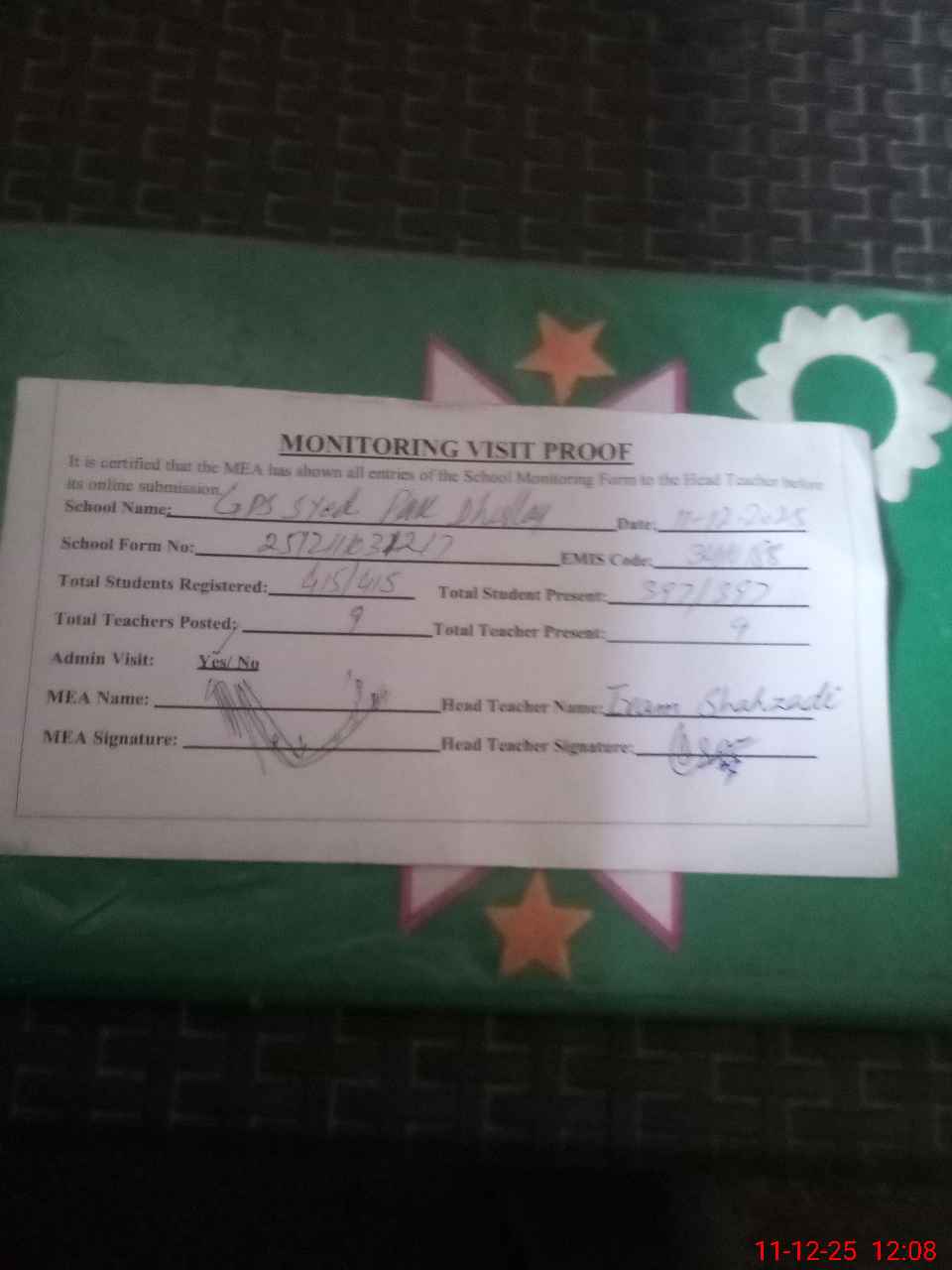 | EMIS Code: 34110188 | Name of School: GPS SYED PAK DHULLAY | |||