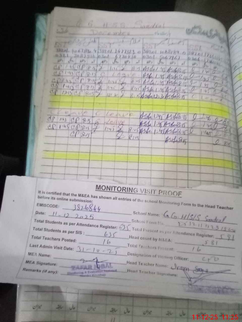 | Remarks (Use Separate Page if Required): last visit 'CEO on 30 October 25 Total on sis 635 Total on register 635 | |||||