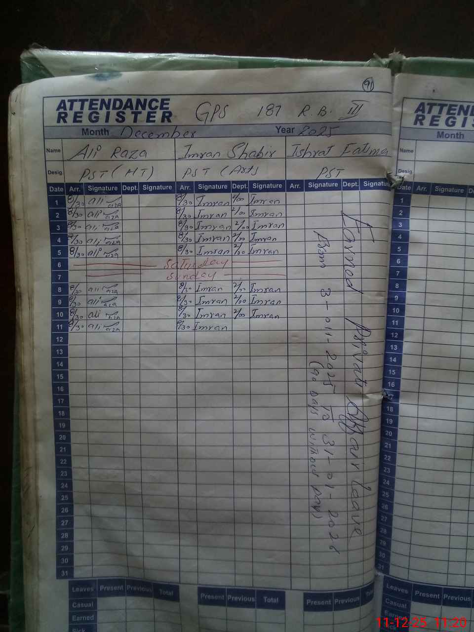 | CNIC | Full Name | Designation | R/C | Absence During Last Calender Month |