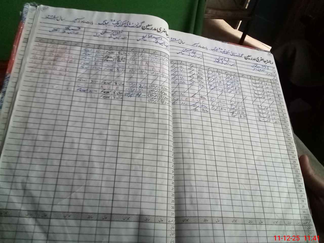 | CNIC | Full Name | Designation | R/C | Absence During Last Calender Month |