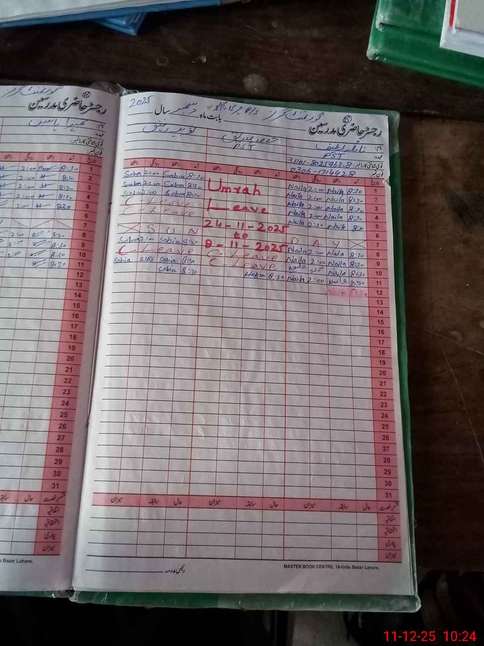 | CNIC | Full Name | Designation | R/C | Absence During Last Calender Month |